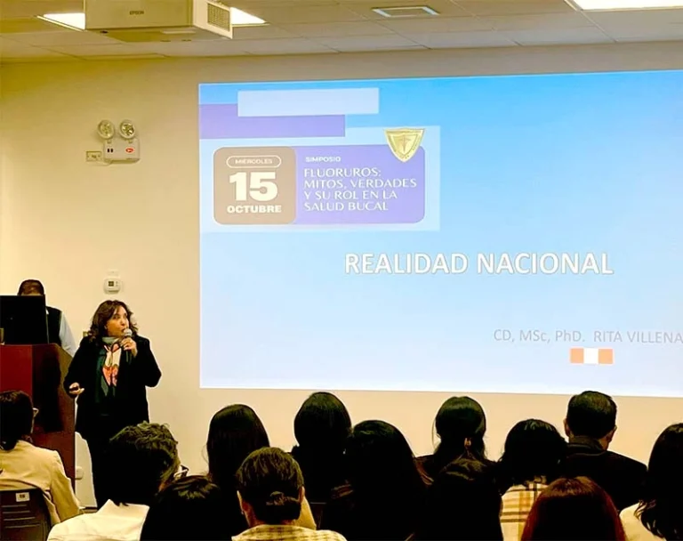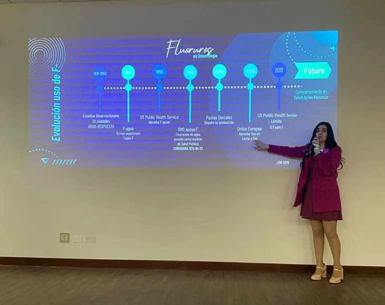 La Dra. Constanza Fernandez (Chile) abordó lo relacionado al uso de fluoruros en la salud pública, practica clínica y cuidado individual basado en eviencia cientifica, además de los mitos y verdades sobre su efecto en el ser humano. La Dra Rita Villena (Perú) expuso sobre la realidad nacional de los metodos comunitarios de los fluoruros y dentifricos. Finalmente, la Dra. Juana Salas (Perú) planteó las perspectivas y desafios de los fluoruros en el Perú.